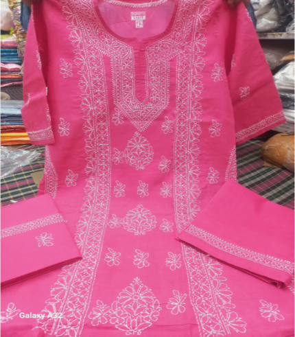Bright Pink – Rubia Cotton Lucknowi Chikan Shalwar Suit with Dupatta
