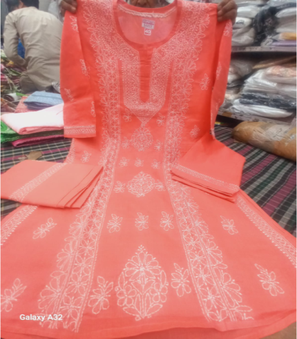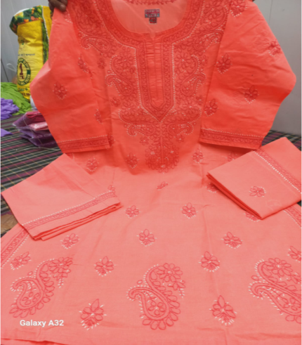 Dark Peach Rubia Cotton Lucknowi Chikan Shalwar Suit with Dupatta