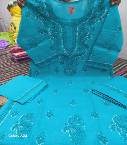 Dobby Cotton Lucknowi Chikankari Kurti with Matching Palazzo Suit (2-Piece Set)
