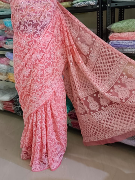 Georgette Full Jaal Chikankari Saree