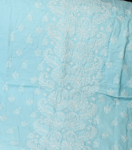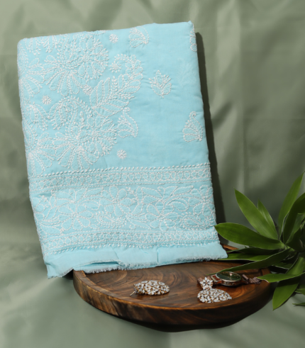 Pure Cotton Embroidered Suit Set – Aqua Blue Floral Elegance