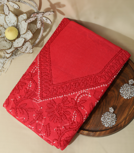 Pure Cotton Scarlet Red Embroidered Suit Set – Bold Floral Charm