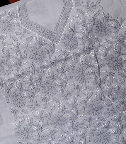 Pure Cotton Heavy Embroidered Suit Set – Steel Grey Elegance