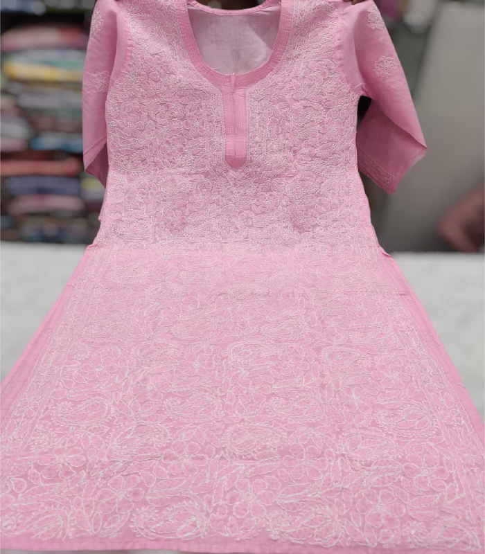 Be the first to review “Beautiful Chikankari Cotton Front Jaal Pink Kurti”
