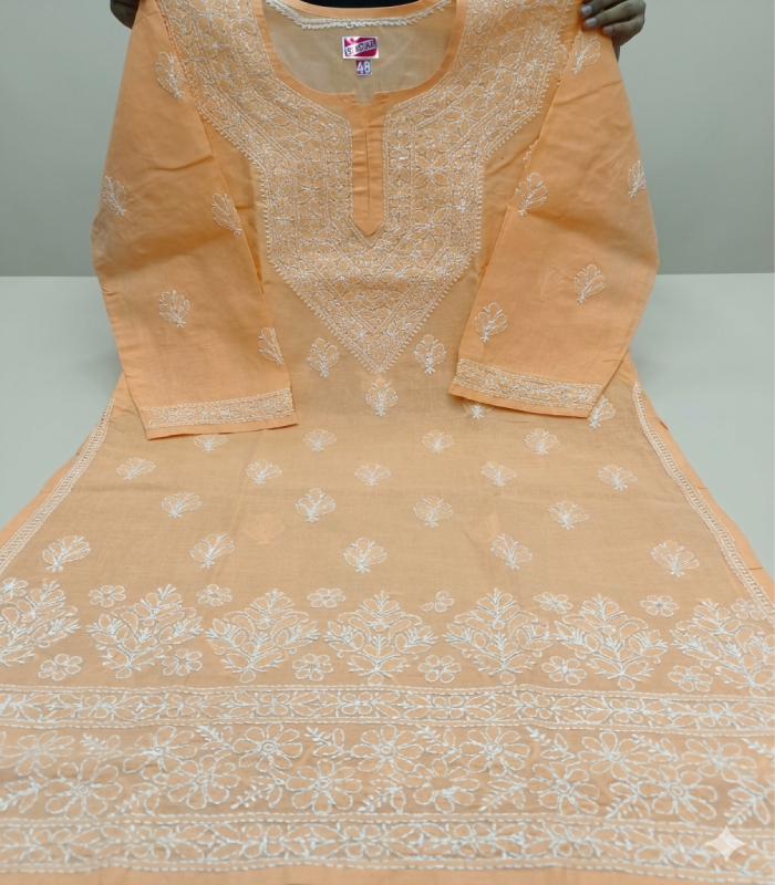Beautiful Chikankari Cotton Peach Kurti