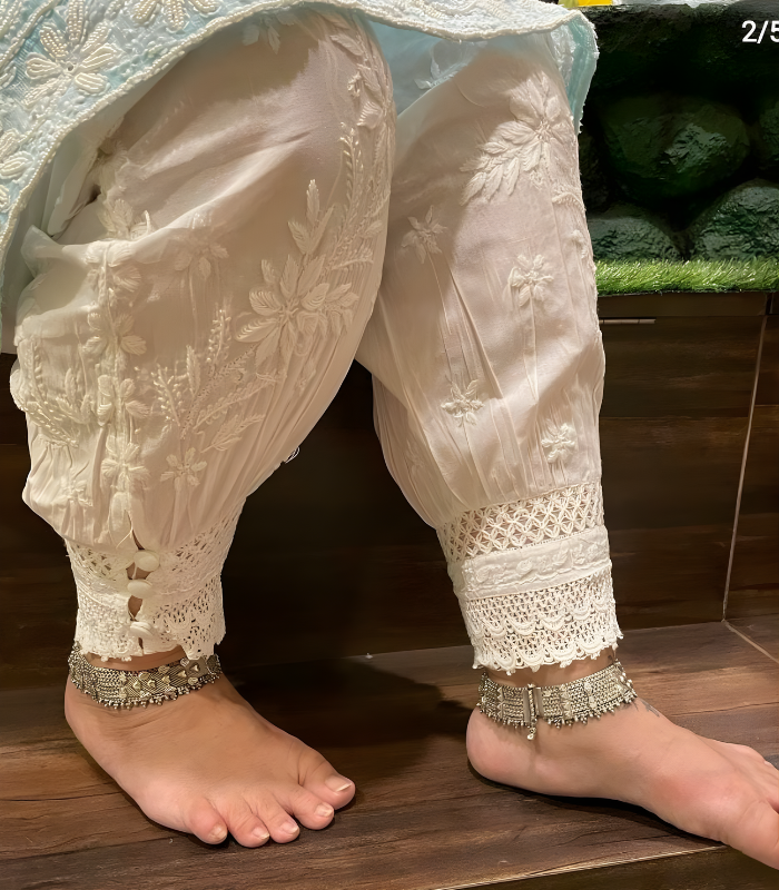 Upgrade your ethnic style with this elegant cotton palazzo featuring beautiful jaldar work. Designed for both comfort and style, it is crafted from pure heavy-quality cotton, ensuring durability along with a soft and breathable feel.