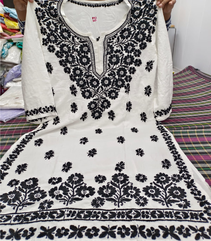 Grace meets craftsmanship in this elegant Modal Kurti, beautifully adorned with heavy daman Lucknowi Chikankari hand embroidery. Designed for women who appreciate timeless tradition with modern comfort, this kurti offers a rich ethnic look perfect for everyday elegance or festive wear.
