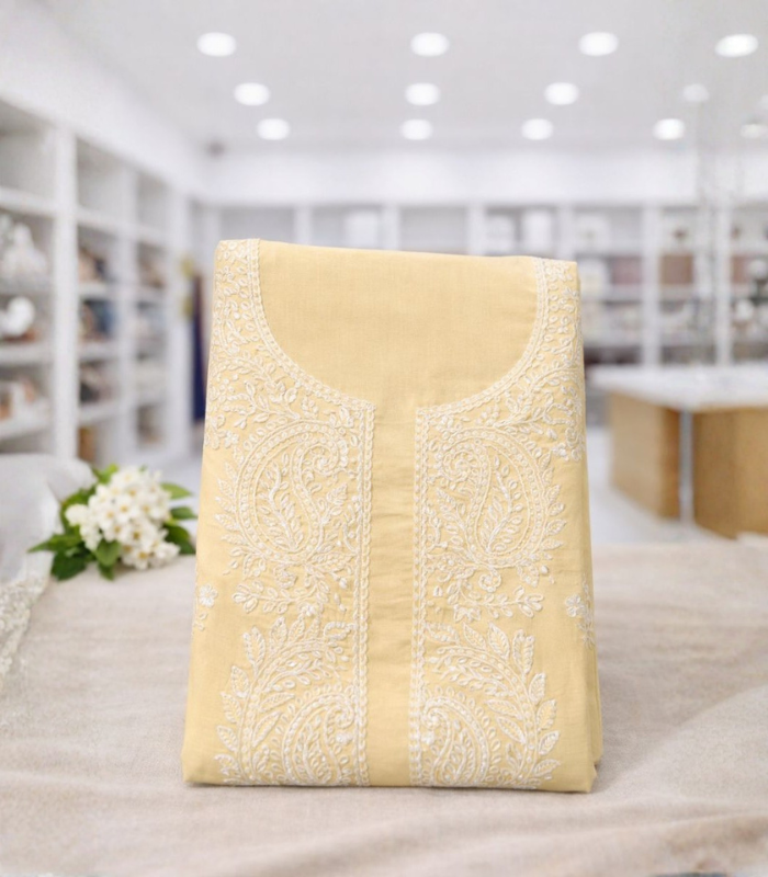 Be the first to review “Soft pastel Lemon Yellow Colour with White threadwork”