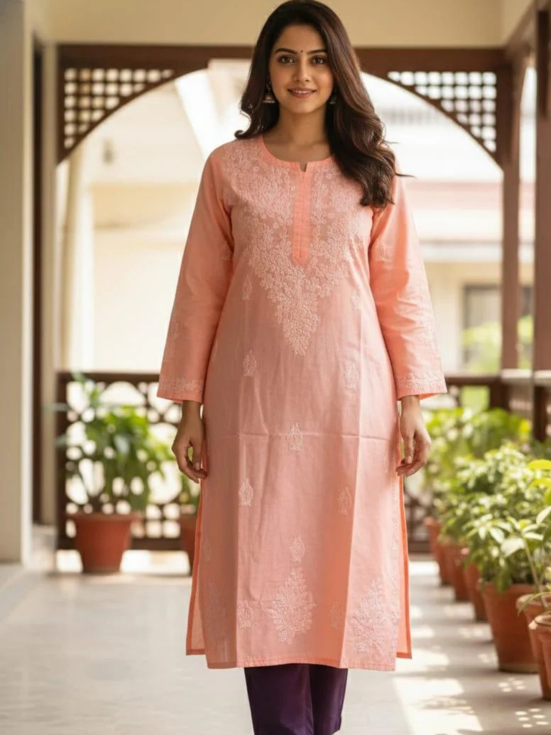 Airy and lightweight voile cotton kurti thoughtfully designed for ultimate summer comfort and breathability. The soft fabric feels gentle on the skin, making it perfect for warm days, while delicate hand embroidery adds a graceful, refined finish that enhances its timeless appeal.